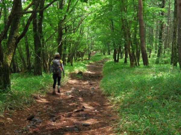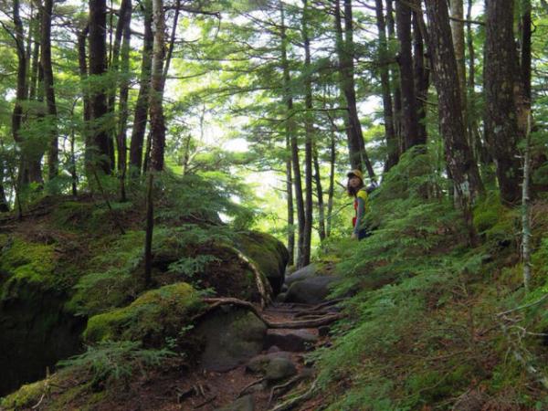 でも、時折、晴れ間がのぞいてきて、木漏れ日が登山道に落ち