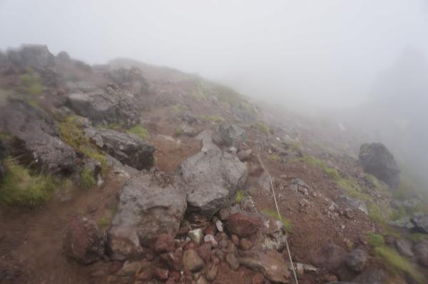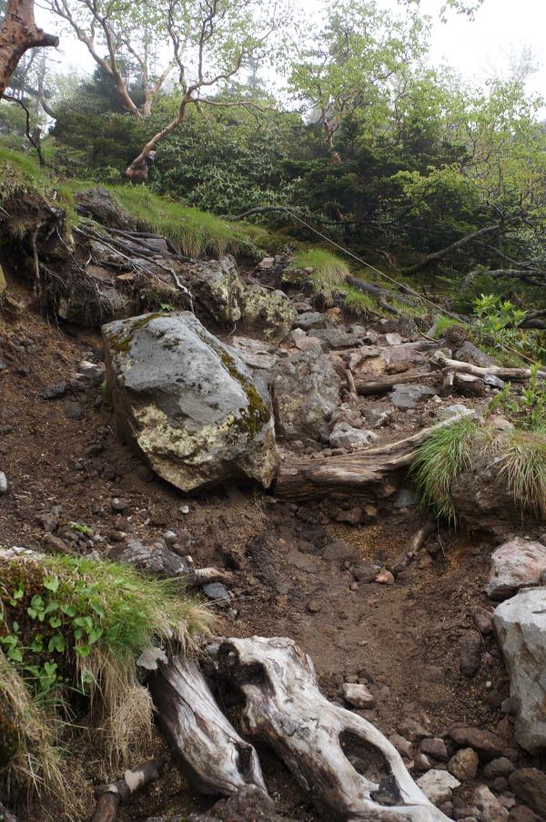白根山山頂~座禅山間はガレ場・岩場が多少あるので下りや雨天時は足元に木を木をつけましょう。