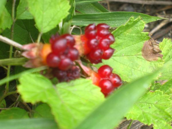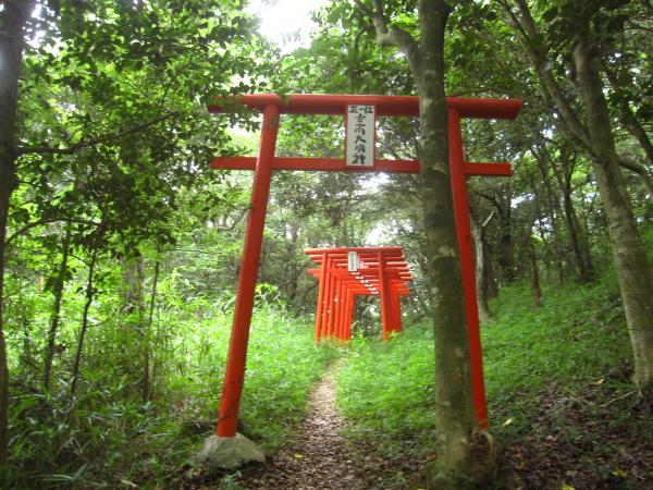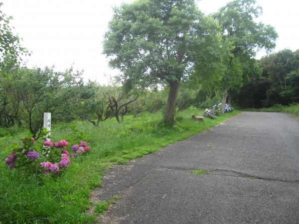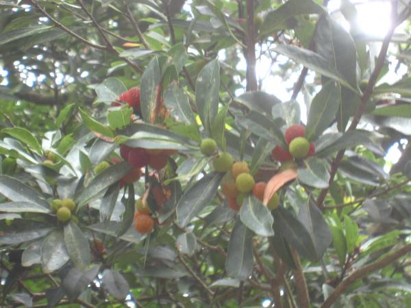 神社の境内の周りには大きなアジサイとヤマモモがたくさんなっていました。