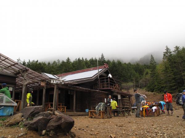 行者小屋に到着。当初の計画では赤岳から硫黄岳まで行く予定でしたが、行者小屋まで意外と時間がかかり、予定を変更し、赤岳&阿弥陀岳へ。