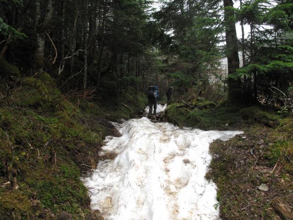 前日の雨のせいか若干沢が増水していました。渡渉には何も問題はありませんでした。