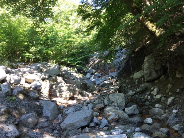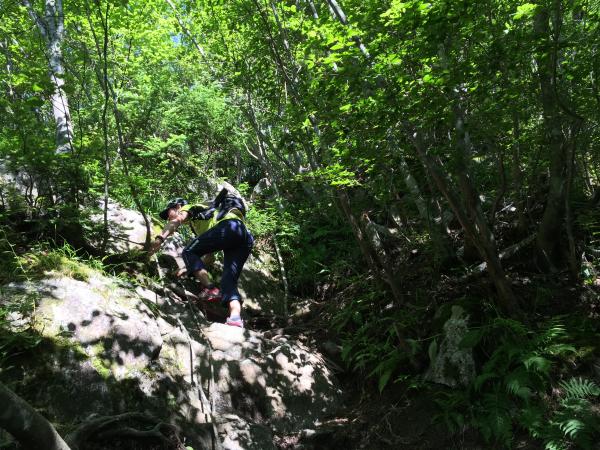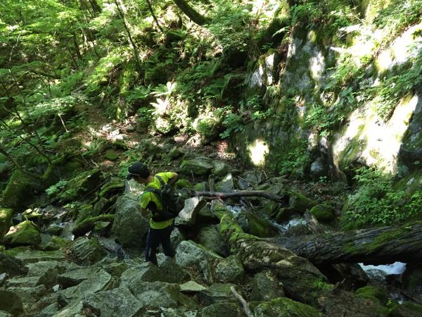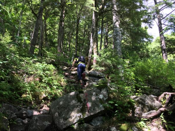 コースとしてはドンドコ沢を詰めて山頂まで進みます。標高差がおよそ1600mあるので、行きは登り一辺倒。勾配もありますま。