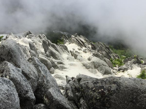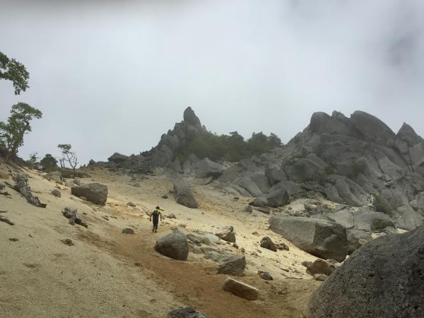 三山を巡る稜線は花崗岩の間を縫うようにコースがつけられており、似ている雰囲気だと北アルプスの蝶ヶ岳の様でした。