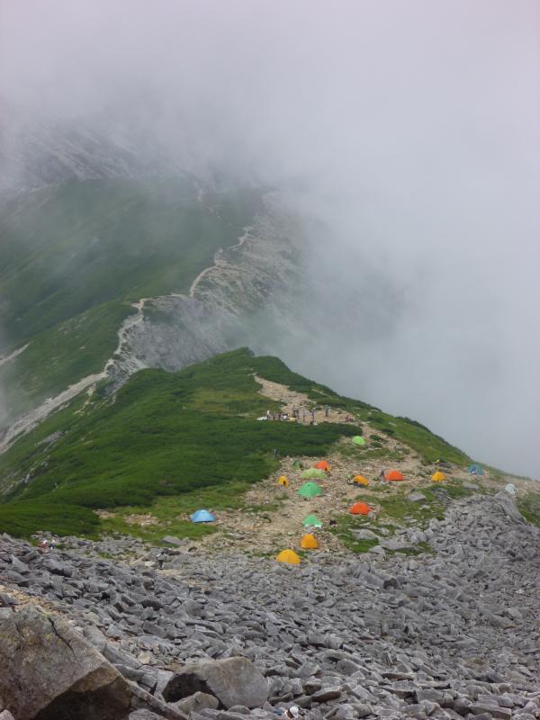 稜線分岐(11:30)→ 笠ヶ岳キャンプ地(13:00)
