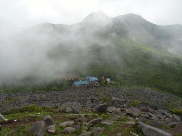 いわいわした下りを数十分いくとなんとも趣のある青年小屋さんにたどり着きます。