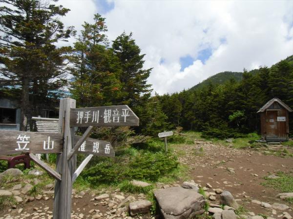 - 7:30観音平(45分)雲海展望台(40分)押手川分岐(75分)編笠山山頂(30分)青年小屋(55分)押手川分岐(65分)観音平13:40