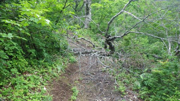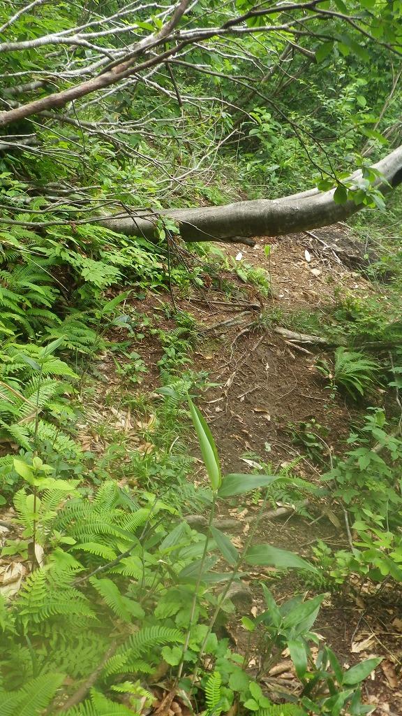 ただでさえ細く、うっすらとした踏み跡なのに・・・季節は初夏。ぐんぐん伸びている草花で、踏み跡は隠れ気味です。伸びたアザミ類が容赦なく、腕や足を攻撃してきます。