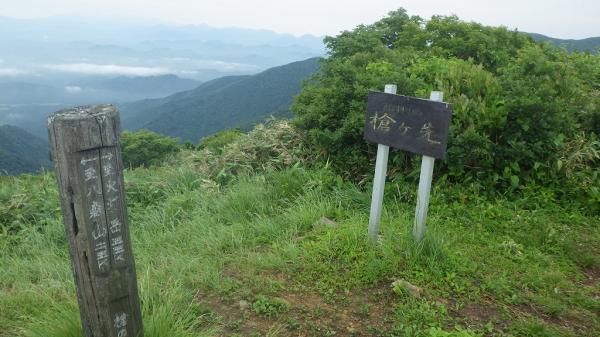 槍ヶ先から火打岳までは一部踏み跡不明瞭。やせ尾根が続くのと、左右の植物がぐんぐん伸びており、足元は非常に見辛い箇所があります。伸びたアザミ類をかき分ける事があるので、長袖やアームカバー必携。