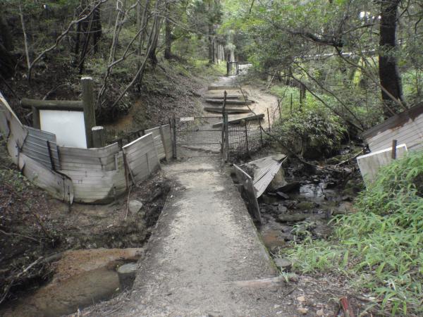 やっと来れた六甲最高峰だったのでゆっくり休憩したかったのですが、雨が降り出したので早々に下山ルートへ。魚屋道は比較的道幅も広く、傾斜もそれほどではなかったので快適でした。
