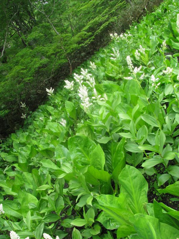 ミズバショウはほぼ終わり、代わって多くの種類の花々が咲いています。小さくて地味な花ですが、ヒメシャクナゲが多く咲いていました。ヤナギの木にアカゲラが巣作りをしていたり、カッコウの声が響きわたり、ハルゼミが鳴いていたり、初夏の尾瀬ヶ原を楽しみました。