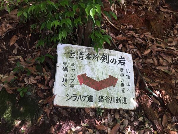 - 駐車場-(50)-剣の岩-(30)-山頂-(5)-キャンプ場-(20)-剣の岩-(40)-駐車場