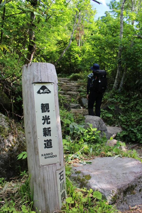 登山道は白山登山の人気のコース、石川県側から登る「観光新道」と「砂防新道」