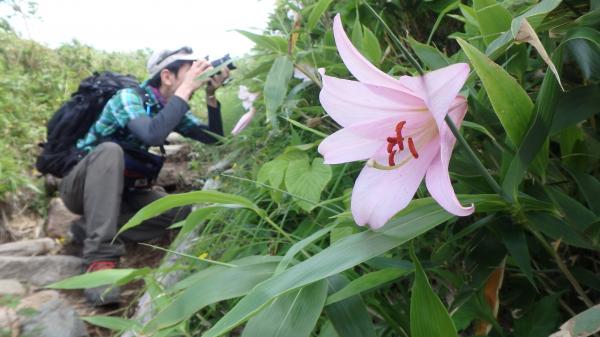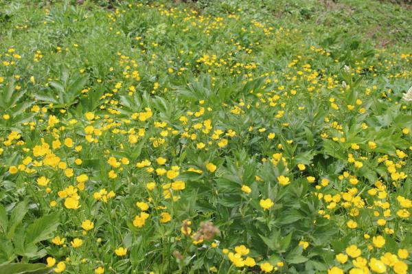尾根に出るとササユリ、ニッコウキスゲが出迎え、進むにつれて、ミヤマキンポウゲ、コバイケイソウ、ハクサンフウロ、ハクサンチドリ、シモツケソウ、シナノキンバイ、ダイモンジソウ、などなどが咲き誇り、室堂周辺ではクロユリの群生、イワギキョウ、イワツメグサなどが咲いていました。
