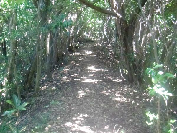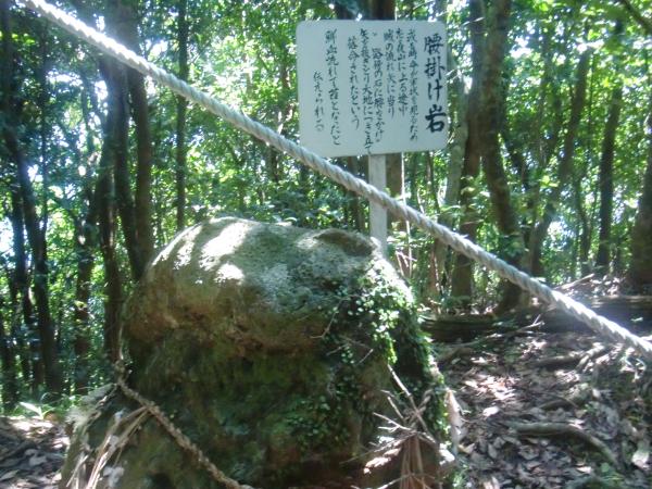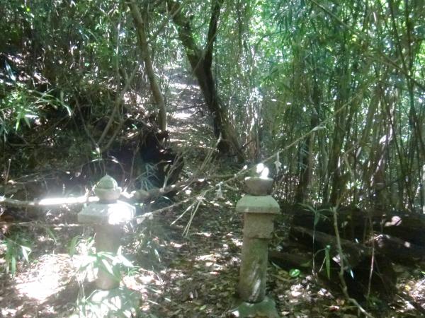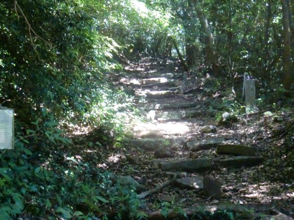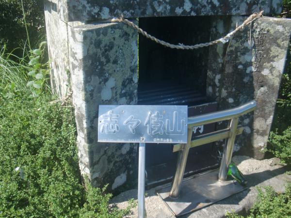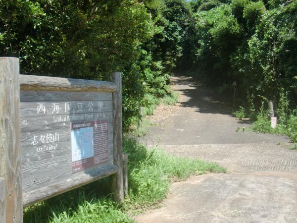 - 志々伎神社駐車場==(15分)==中宮跡==(45分)==草履置き場==(30分)==志々伎山山頂
