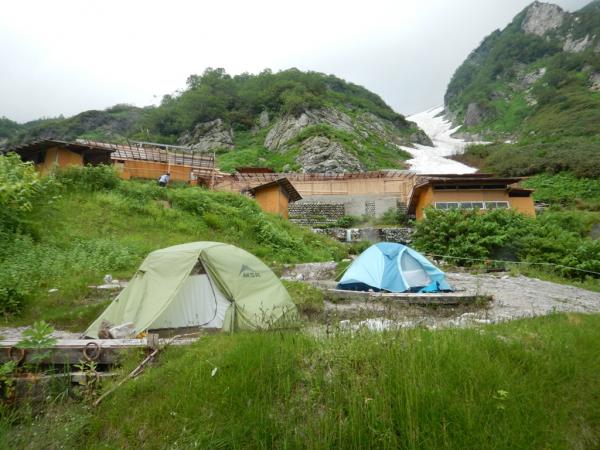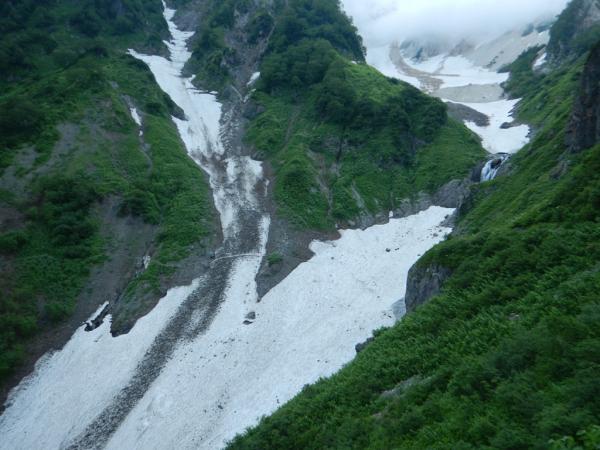 - 小日向のコルを過ぎて白馬鑓温泉が見えた辺りから所々残雪あり。