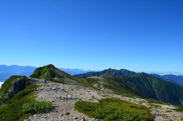三ノ沢岳へ続く稜線は足場が悪いところがあったり、急な登り下りの岩場あり。