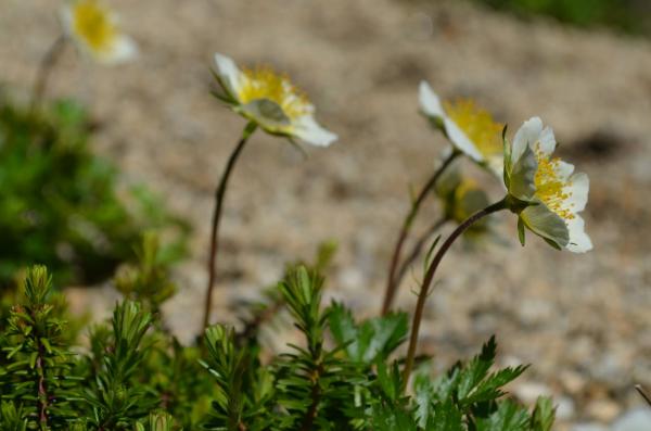チングルマ、ハクサンイチゲ、ミヤマキンポウゲ、コイワカガミなど