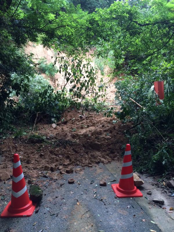 - 祖母野山登山口から入ってすぐに、台風11号の大雨により斜面が崩れている箇所有り。