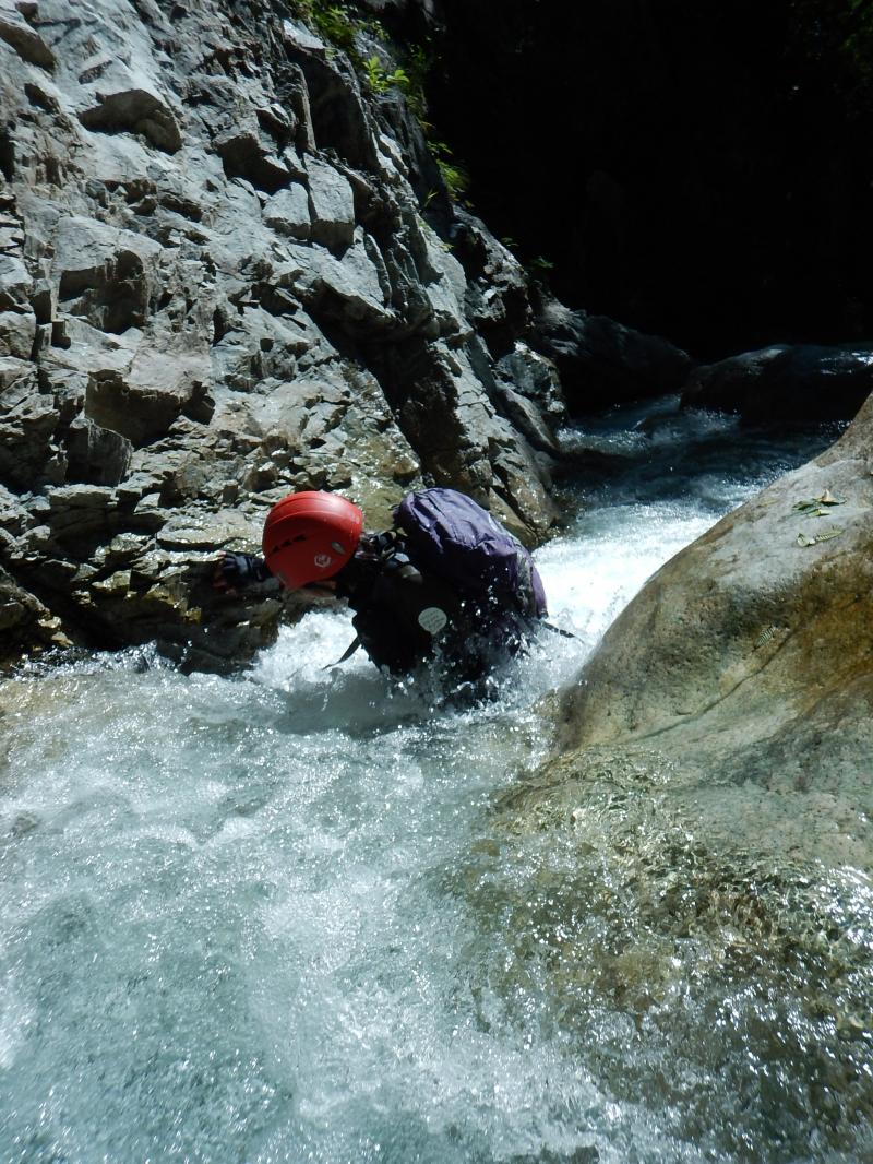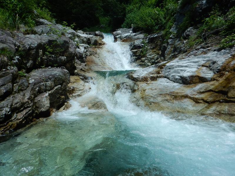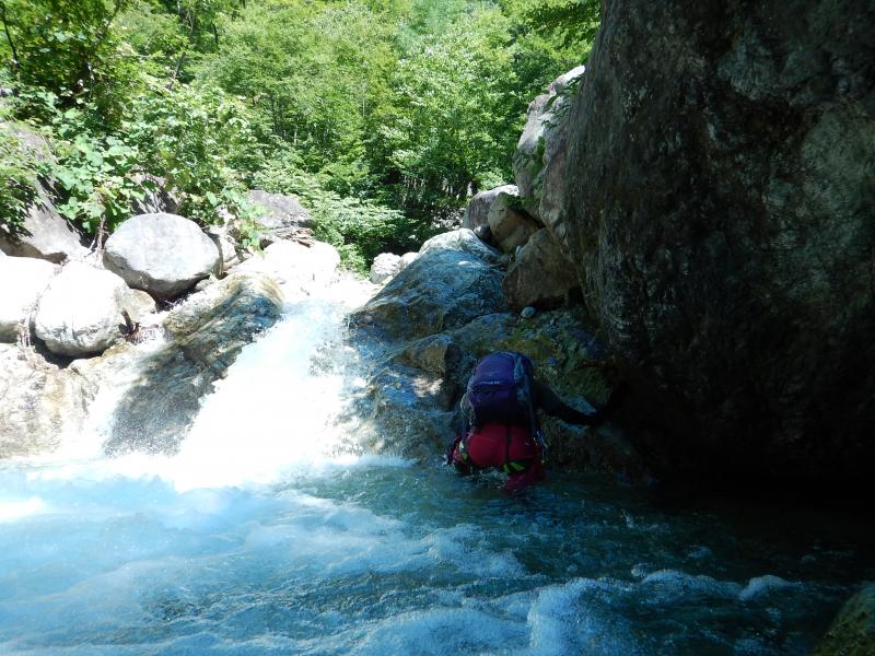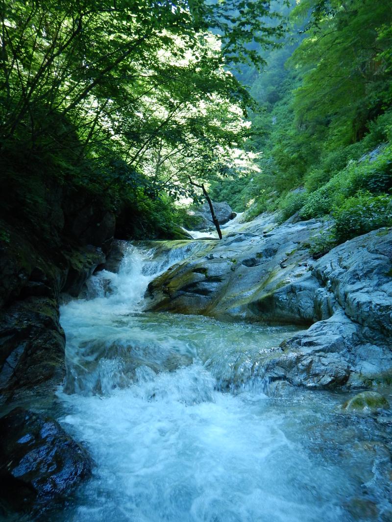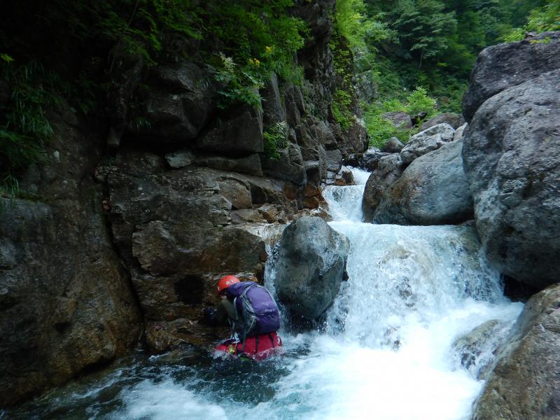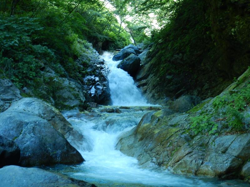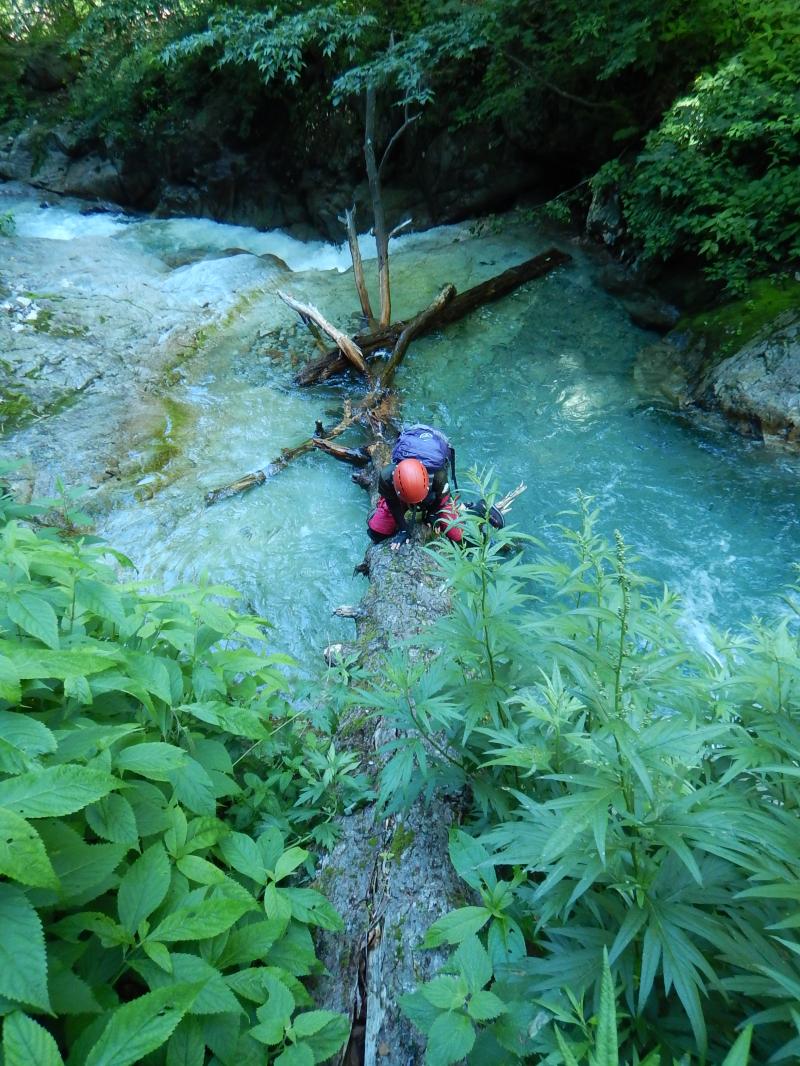 途中3mほどの滝の左岸をトラバースする箇所にボルト連打されていましたが、ツルツルのスラブでかなり悪く、結局高巻きました。