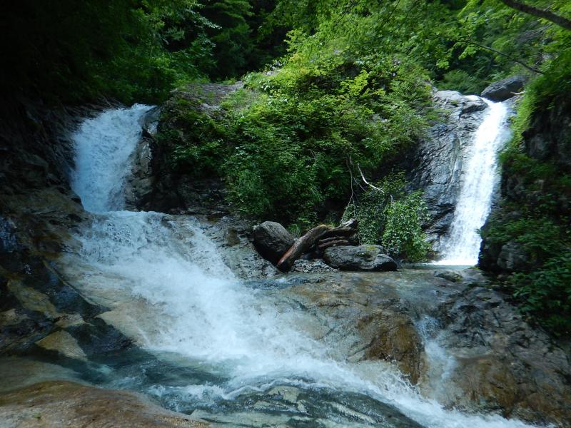 - 七倉山荘-(90)-二俣-(15)-二条の滝-(90)-七倉山荘