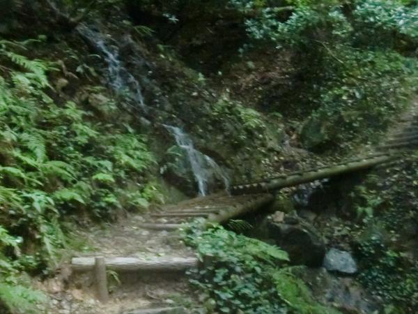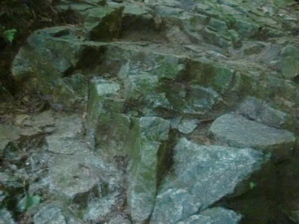 道の途中には岩が埋没している所があって、濡れた状況ではたいへん滑りやすくなります。