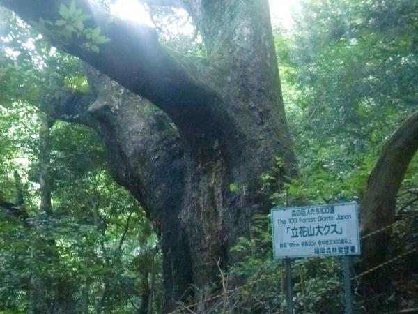 - 駐車場==(10分)==立花山登山口==(20分)==クスノキ原生林==(15分)==立花山山頂