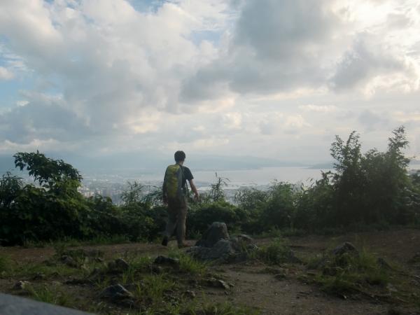 大きな樹木に足を止め、整備された案内板の文字をゆっくり読みながら、夕方の登山道を時間をかけて登って行き、山頂へ到着。