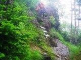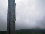 ガスガス真っ白の中なんとか山頂まで雨に降られず登ってれたので気をよくして隣のピーク王岳まで足を延ばすことにしました。標高差は約100mで一旦ガンガン下り最後はまた登りかえして王岳山頂へ。奇跡的に?横岳に流れる雲がブロックされここだけ晴れてます!!しかし天気予報は午後から雨、急いで昼食を取り帰路に着き雨具を着ることなく帰れました。