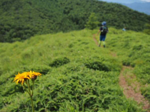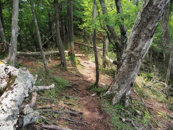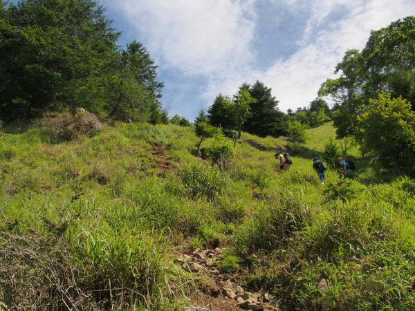 白谷丸から先は笹が切られているが残っている茎が歩きにくく滑る。