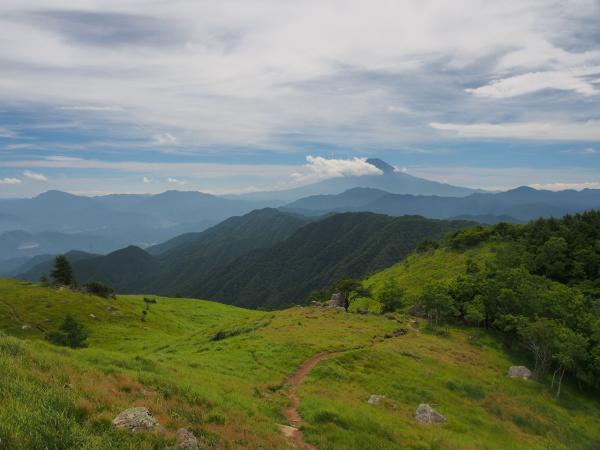 小金沢連嶺とは石丸峠~湯ノ沢峠の通称だそうです。小金沢連嶺は笹原の気持ちよい道が続いていて、さらに秀麗富岳十二景 二番山頂 小金沢山・牛奥ノ雁ヶ腹摺山が含まれています。さらに今回歩いた大菩薩嶺や秀麗富岳十二景 三番山頂 大蔵高丸・ハマイバ丸もあり、ずっと富士山が楽しめるルートでした。