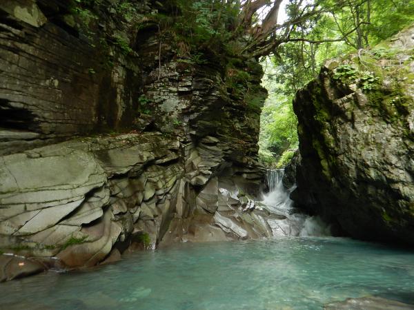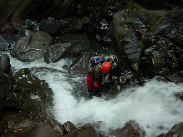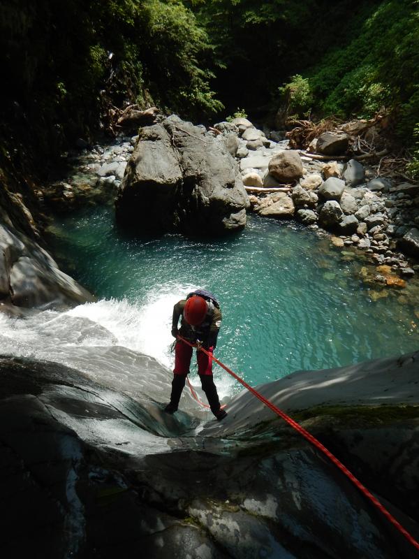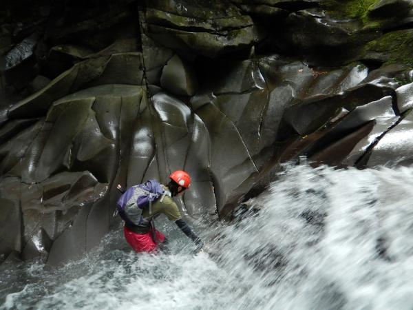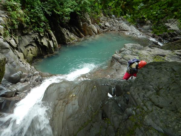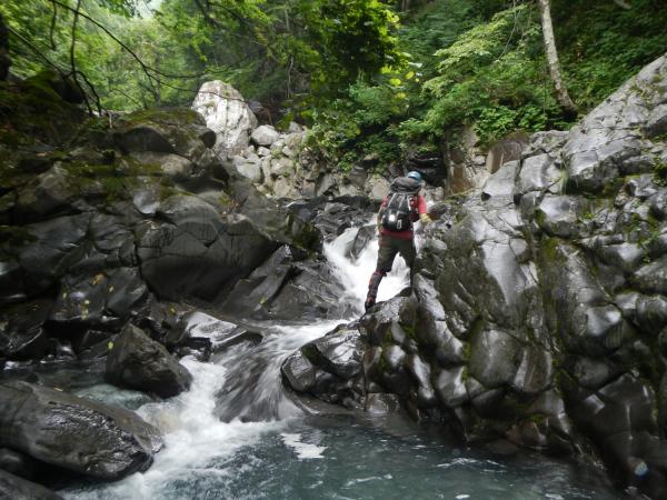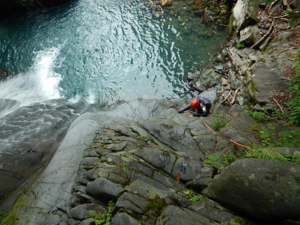 程良い小滝が連続し、6m滝は左側直登。基本ガバで優しいです。