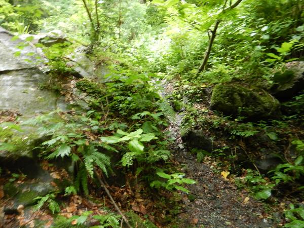 12m滝はさすがに直登できないので左岸のガレから巻いて林道にいったん出てから戻ります。