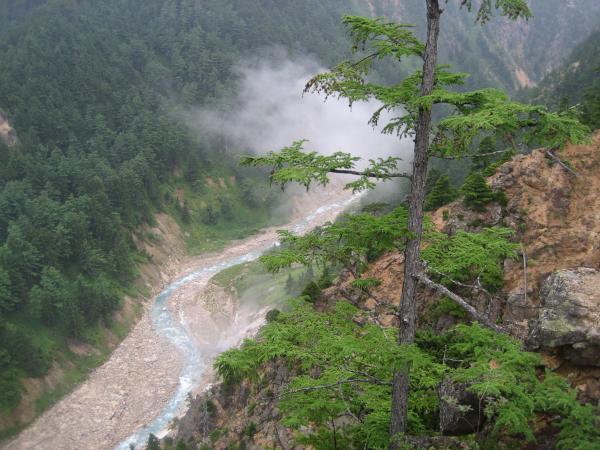 湯俣岳はとってもマイナーな山。展望もなく、ここだけ登りに行く人は少ないと思います。どちらかというと、水晶岳や黒部五郎岳などをまわってきたあとの下山時に通過するのみの、ちょっとしたピークにすぎないのです。しかし、麓の晴嵐荘付近では温泉が沸いているのです!!天然記念物の噴丘泉もあり、高瀬川沿いの晴嵐荘も雰囲気が良く一度は訪れてもらいたい場所です。秘湯感たっぷりの温泉も最高に気持ちいいのでぜひぜひ足をのばしてみてください(^O^)