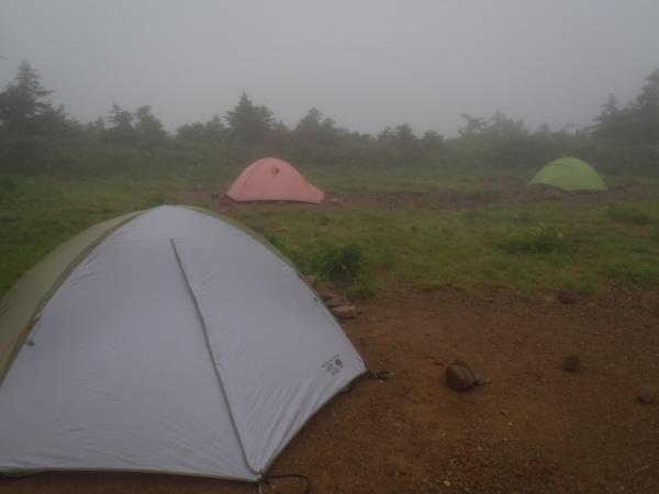 テントを張るときはまだ何とかましでしたが、張り終えて夕食の支度中には土砂降りに…