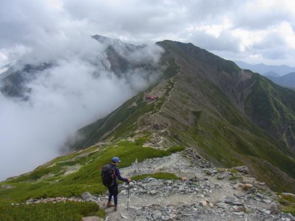 ②北岳山荘(90分)間ノ岳(50分)農鳥小屋(50分)西農鳥岳(40分)農鳥岳(40分)下降点(150分)大門沢小屋(泊)計420分