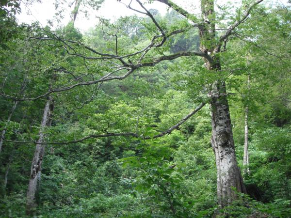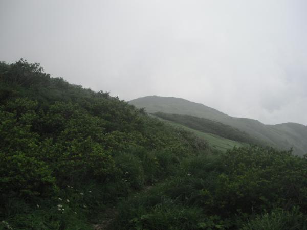 飯豊山荘から温身平まで林道を歩き、石転びの出合までの登山道に入ります。が、これが最初の試練でした。地味なアップダウンの繰り返し、悪い足場の通過、きつい高巻きなど飯豊の難コースは初めからフルスロットルで出迎えてくれました。