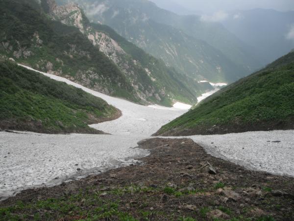 ただ今後雪渓の端が薄くなってくると慎重に場所を選んだ方が良いと思われます。