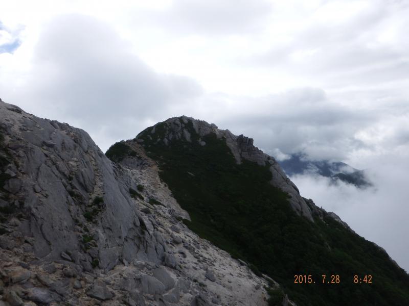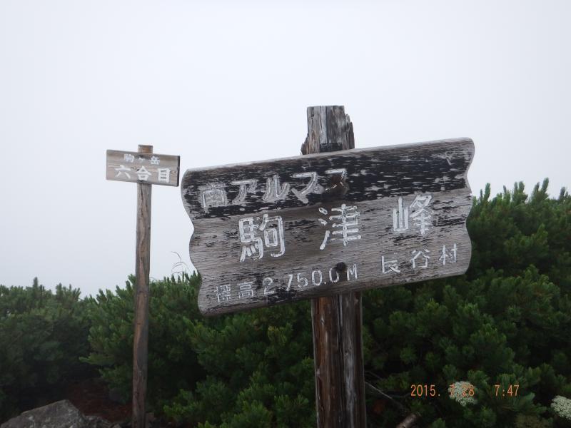2日目:長衛小屋~(60)~仙水峠~(60)~駒津峰~(80)~甲斐駒ケ岳山頂~(50)~駒津峰~(50)~仙水峠~(45)~長衛小屋~(10)~北沢峠