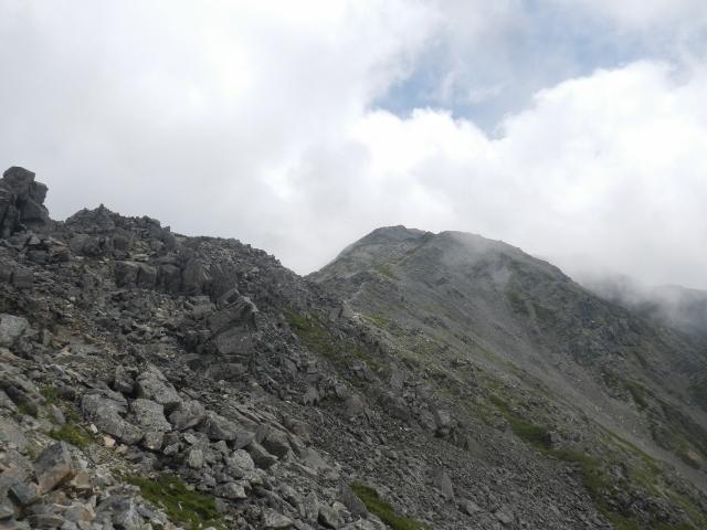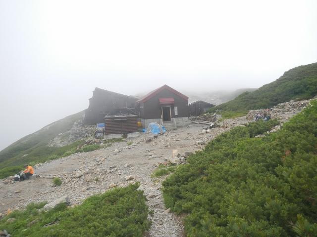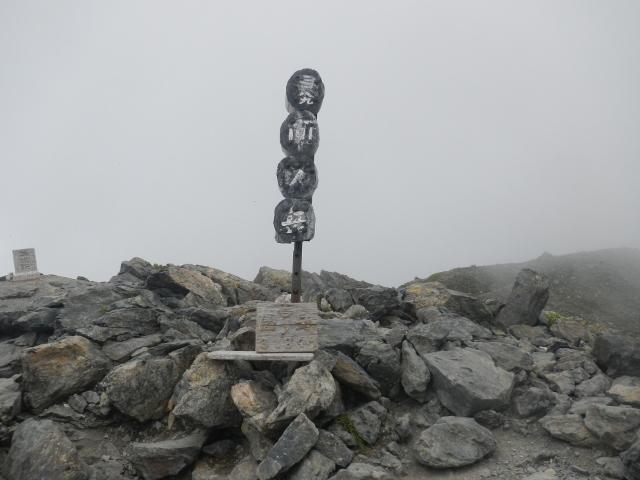間ノ岳はガスで回りの景色が見えなく残念でした。翌日の北岳も雲の中だろうかと心配していましたが、