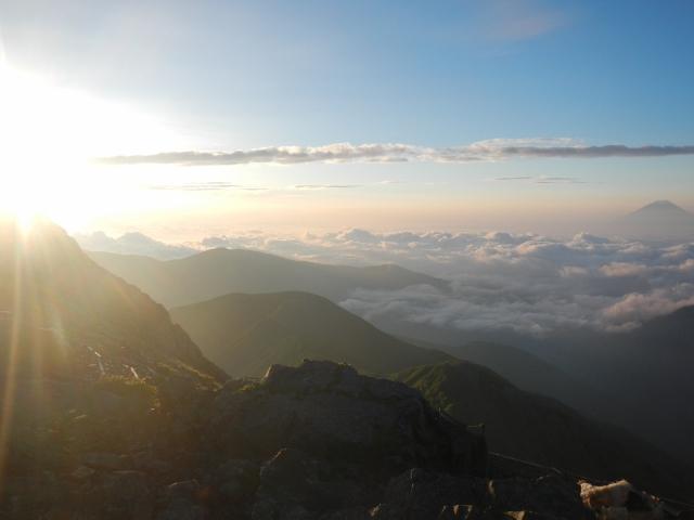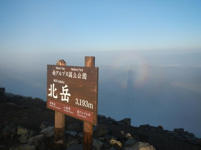 ご来光、雲海の中の富士山、鳳凰三山、甲斐駒、仙丈もばっちり見る事ができて、ブロッケン現象も見る事ができました。