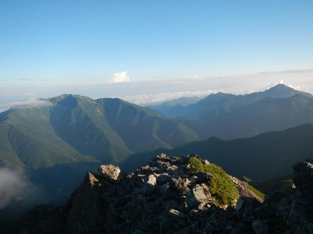 朝方雲がないのに気づき、チャンスと思いテントを早々と撤収し4時半には山荘を出発して晴れた山頂を堪能できました。