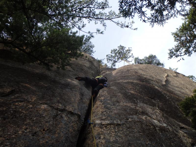 クラック地獄エリアは初めてでしたが、すっきりした岩場に印象的なクラックが並び、幅は広くないものの長さは十分で、登りごたえのあるクラックが充実していました。