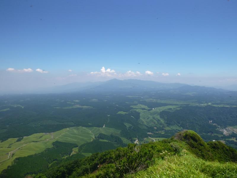 山頂の展望は極めてすばらしく、阿蘇高岳、外輪山、九重連山、祖母山と