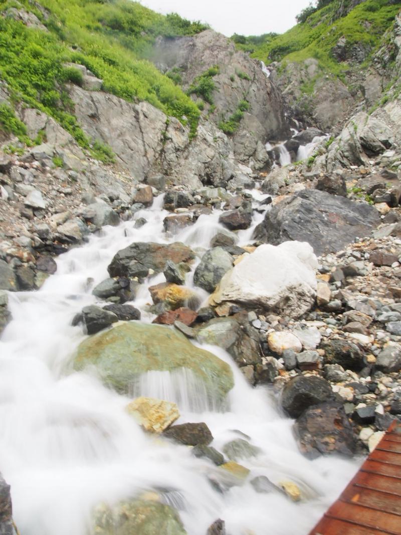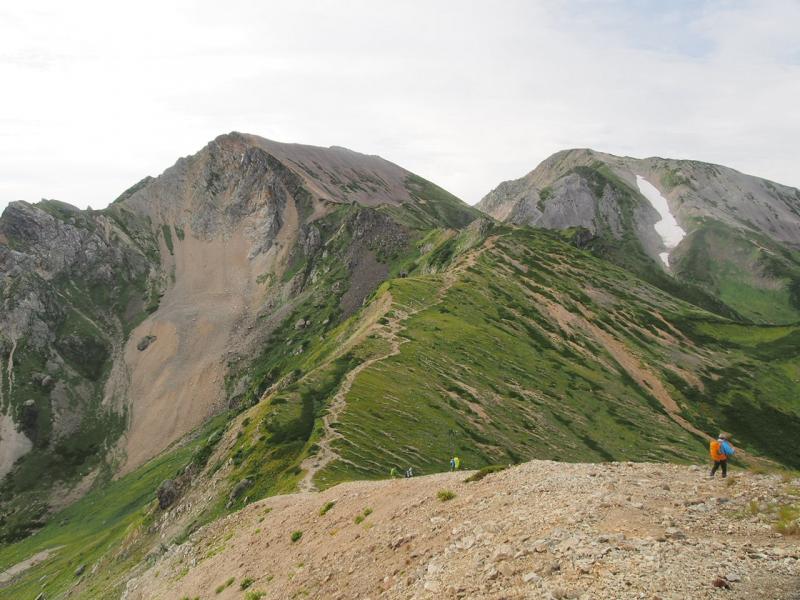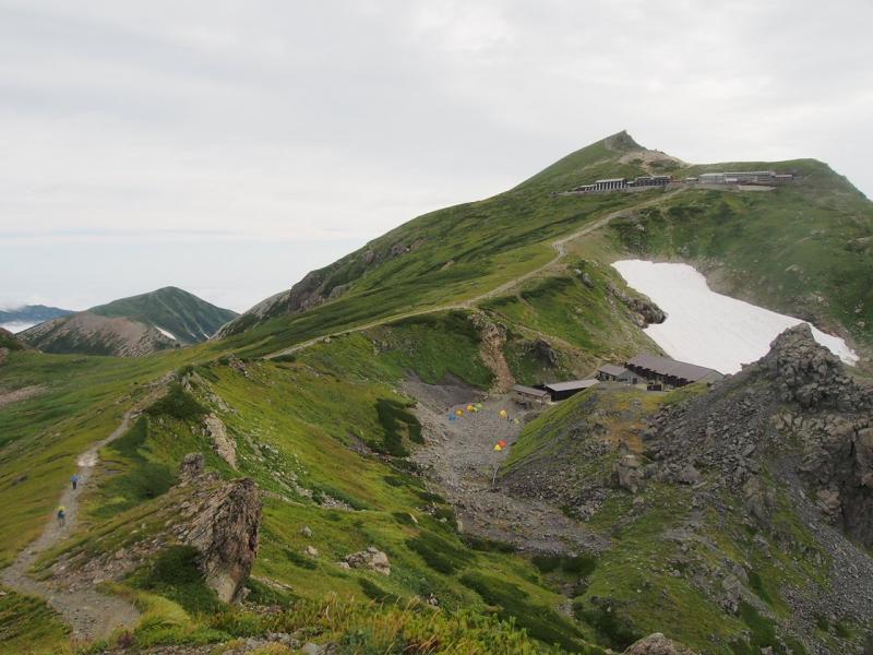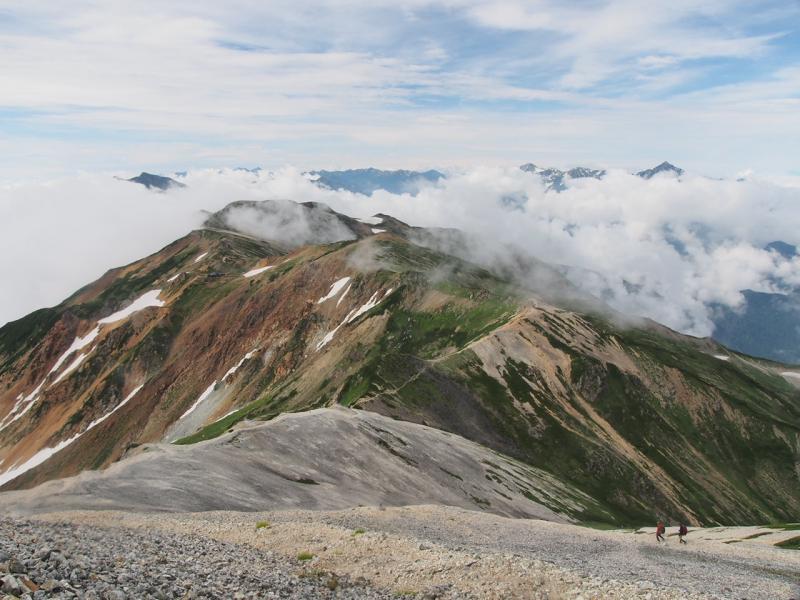 - 大雪渓は6本爪もしくはチェーンアイゼンとストックがあると歩きやすい。