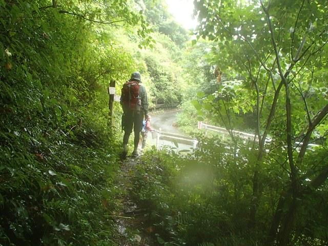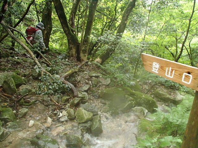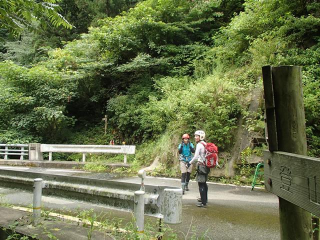 登山道を上がっていくと、一度林道にでます。その先から、入渓しました。
