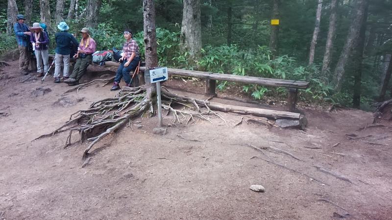 下りの方を見ると汗びっしょり。曇りとはいえ樹林帯は暑そうだなと覚悟し、行きます。
