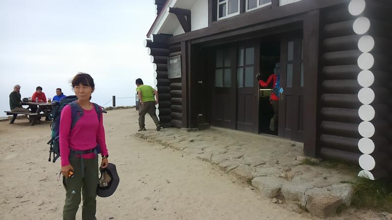 燕山荘で一休みしていると雨が降ってきたので、レインを着て下山。