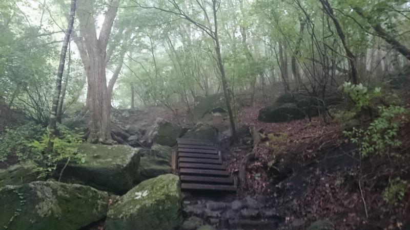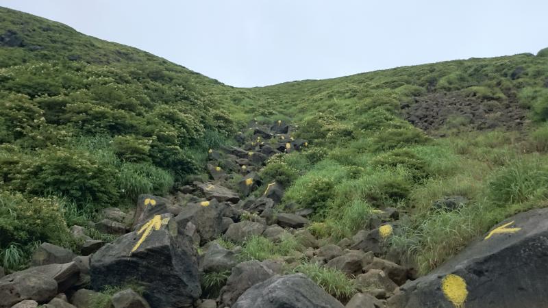 坊ガツル~中岳 岩が濡れていると滑りやすいので注意。ガスっているとルートを見失いやすいと思います。黄色のペンキ印を目印にしてください。
