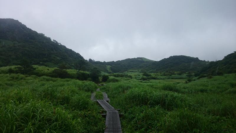 予想に反して青空がみえたので急いで朝食を食べ大船山へ出発。低木の樹林帯を登るなかで露はらいでズボンは見事に濡れてしまいました。残念ながら山頂ではガスってしまいましたが雨具を着ることなく坊ガツルへ下山。テントを撤収して長者原へ。登山口にあるヘルスセンターで温泉に入って(350円&シャワーが無いので注意)ご褒美にソフトクリームを食べて無事山行終了。