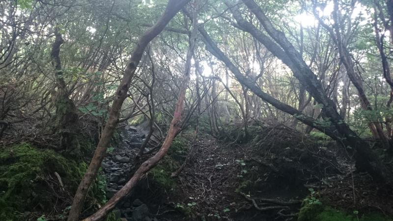 坊ガツル~大船山 低木の樹林帯で朝露でズボンが濡れるのでレインパンツを着用した方が良いと思います。